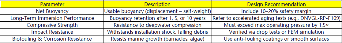 Designing a buoyancy module involves much more than simply "adding foam." The following parameters must be carefully evaluated: