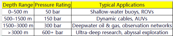 High Pressure Resistance: Capable of withstanding static pressures at depths from 500 m to over 6,000 m